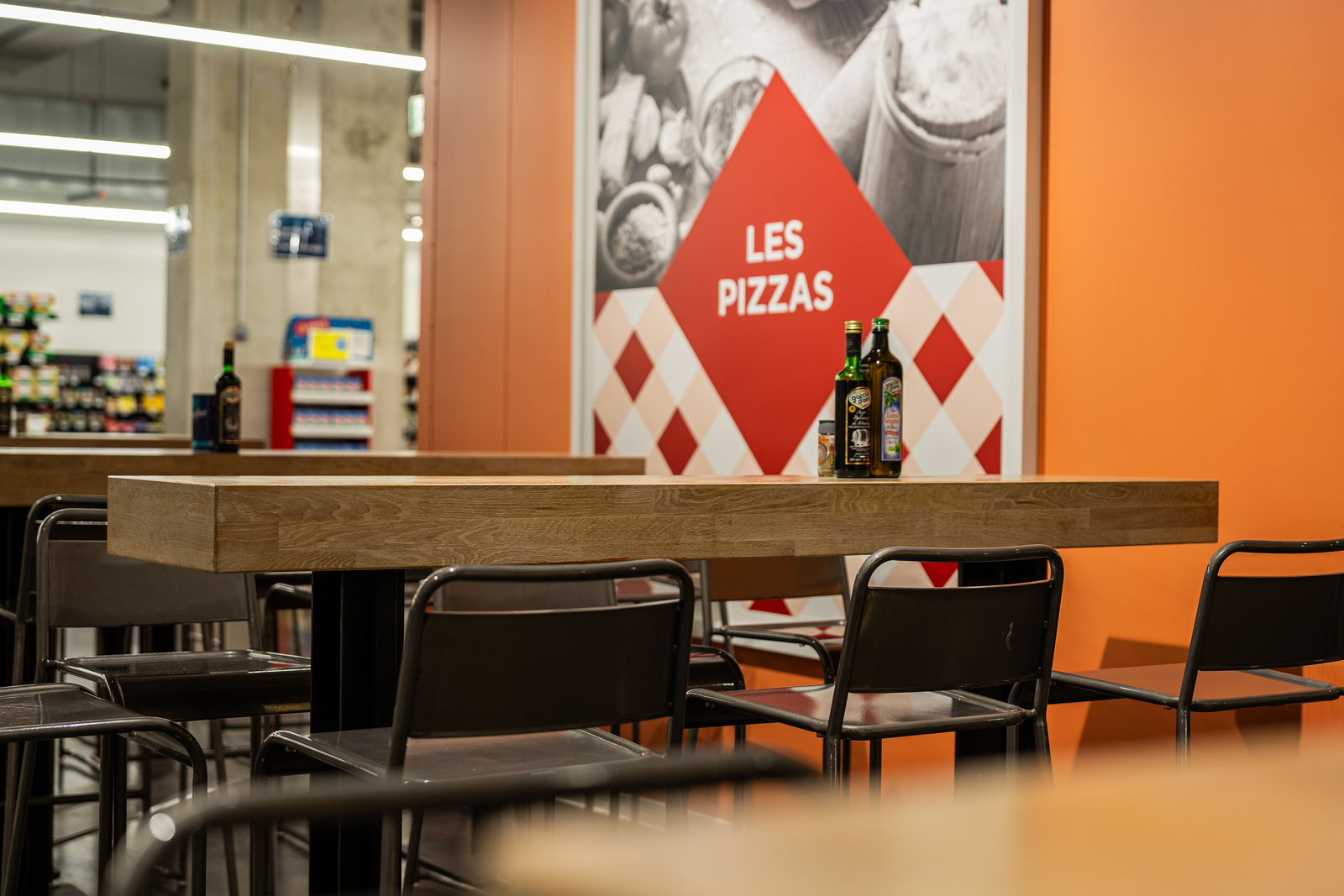 Nos équipes ont réalisé l’aménagement complet d’une zone de restauration avec du mobilier sur mesure : tables hautes et basses en bois massif, assises adaptées et intégration d’éléments décoratifs. L’ensemble associe convivialité et robustesse, pour un espace fonctionnel et chaleureux.