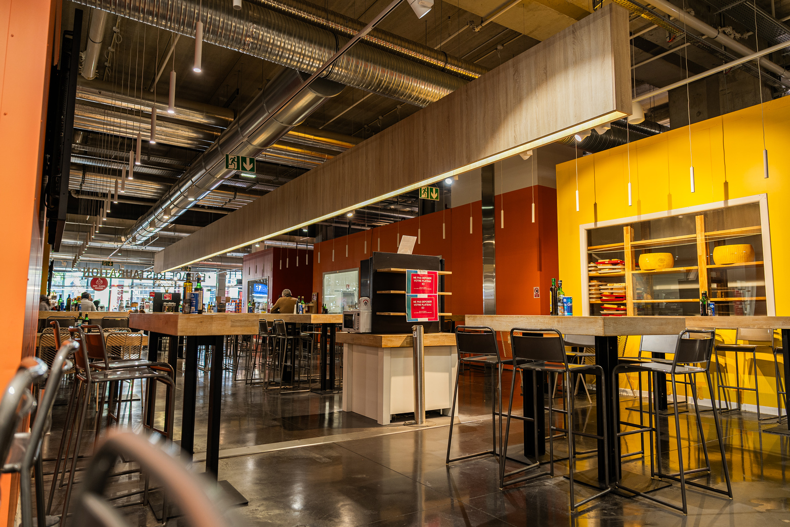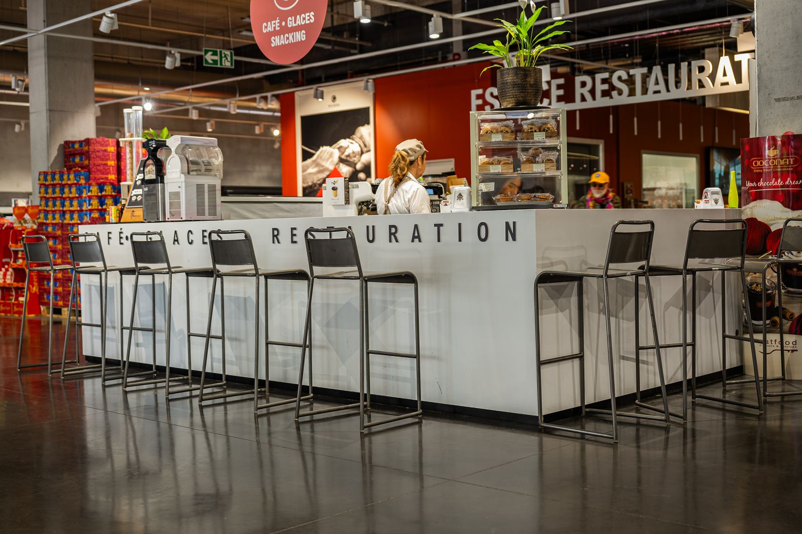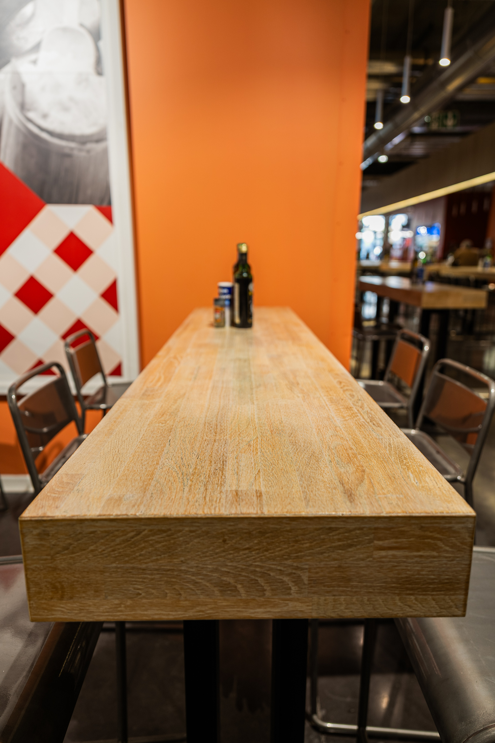 Nos équipes ont réalisé l’aménagement complet d’une zone de restauration avec du mobilier sur mesure : tables hautes et basses en bois massif, assises adaptées et intégration d’éléments décoratifs. L’ensemble associe convivialité et robustesse, pour un espace fonctionnel et chaleureux.
